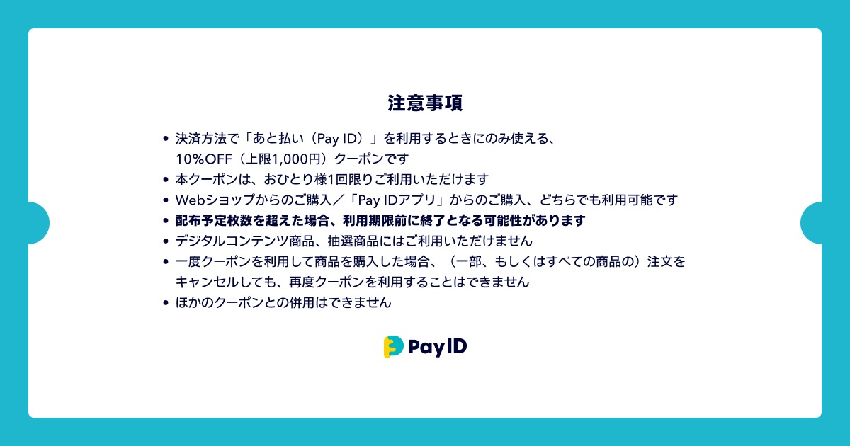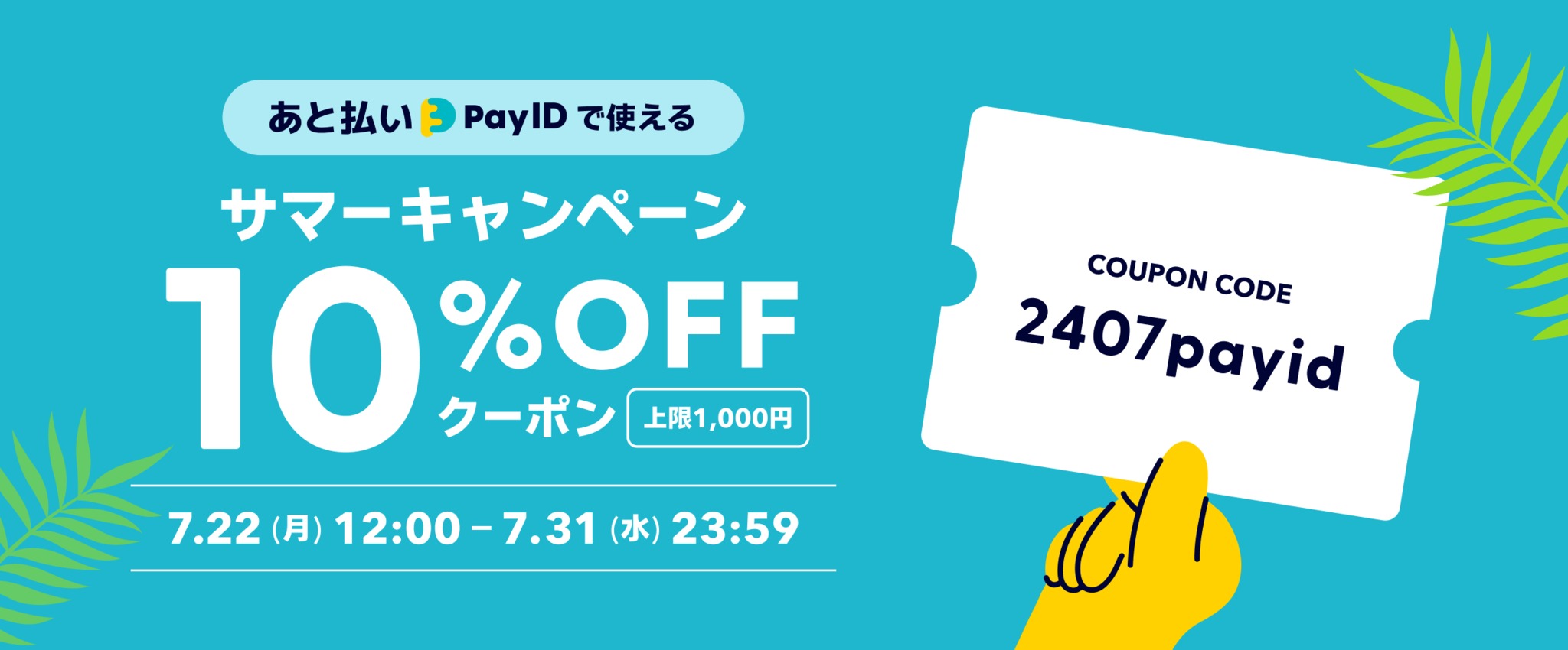 「あと払い(Pay ID)」でのお支払いで、**10%OFFクーポン(上限1000円)**がその場で使える!
