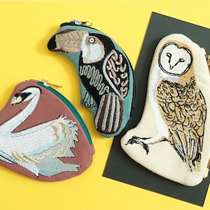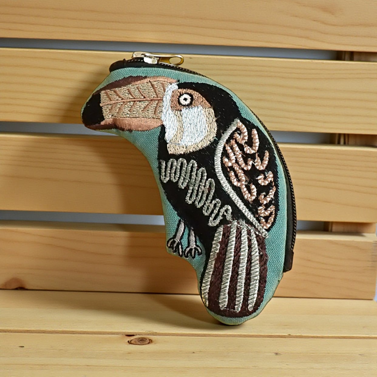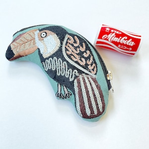 《鳥/オオハシ》ポーチ 刺繍ポーチ オニオオハシ トゥカン 13.5×10cm artipur COTTAGE