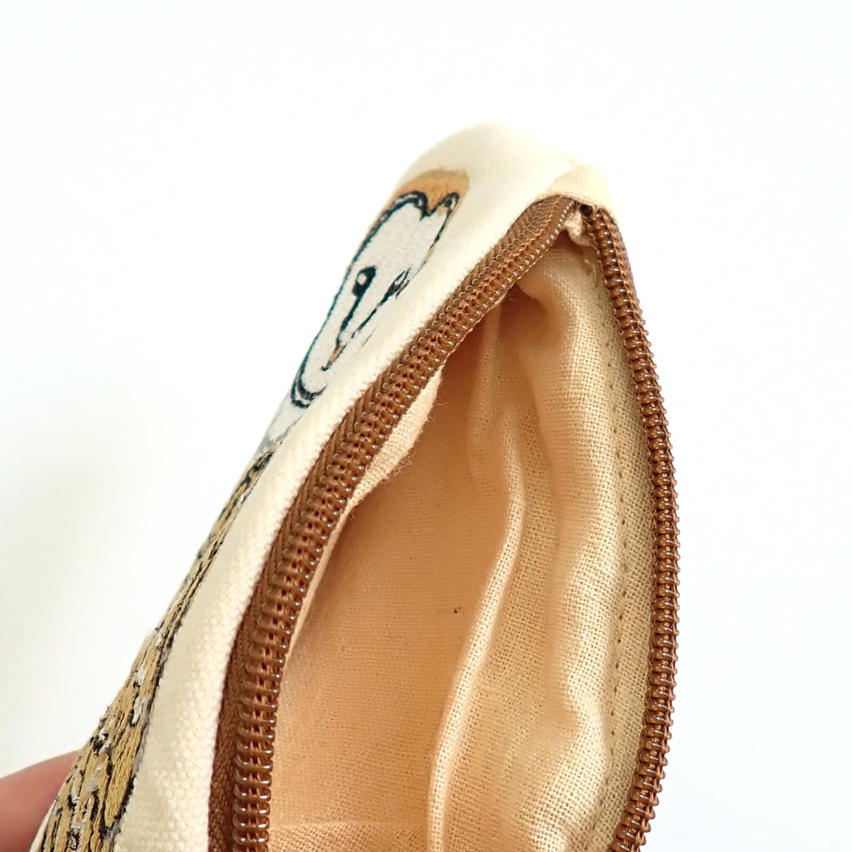 《鳥/ふくろう》ポーチ 刺繍ポーチ メンフクロウ 16cm×11cm artipur COTTAGE