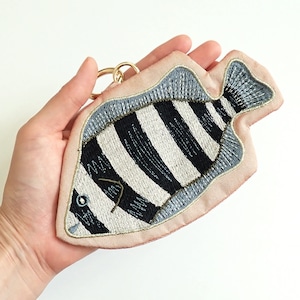 《魚/イシダイ》 キーポーチ バッグチャーム 石鯛 手刺繍 artipur COTTAGE