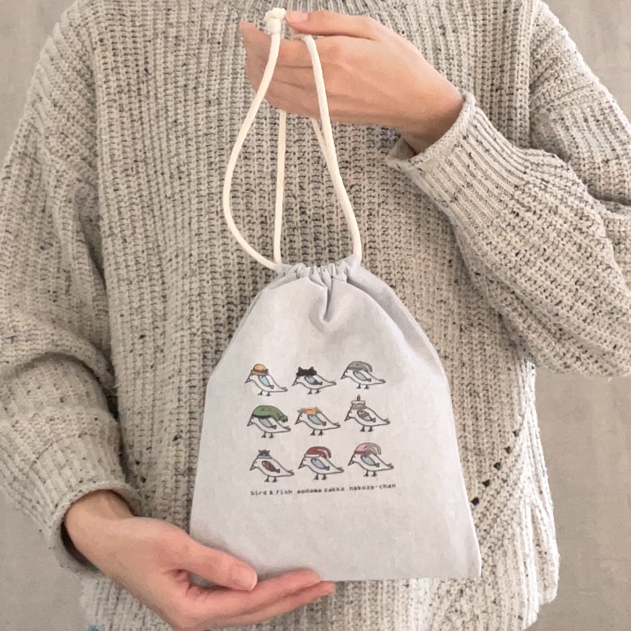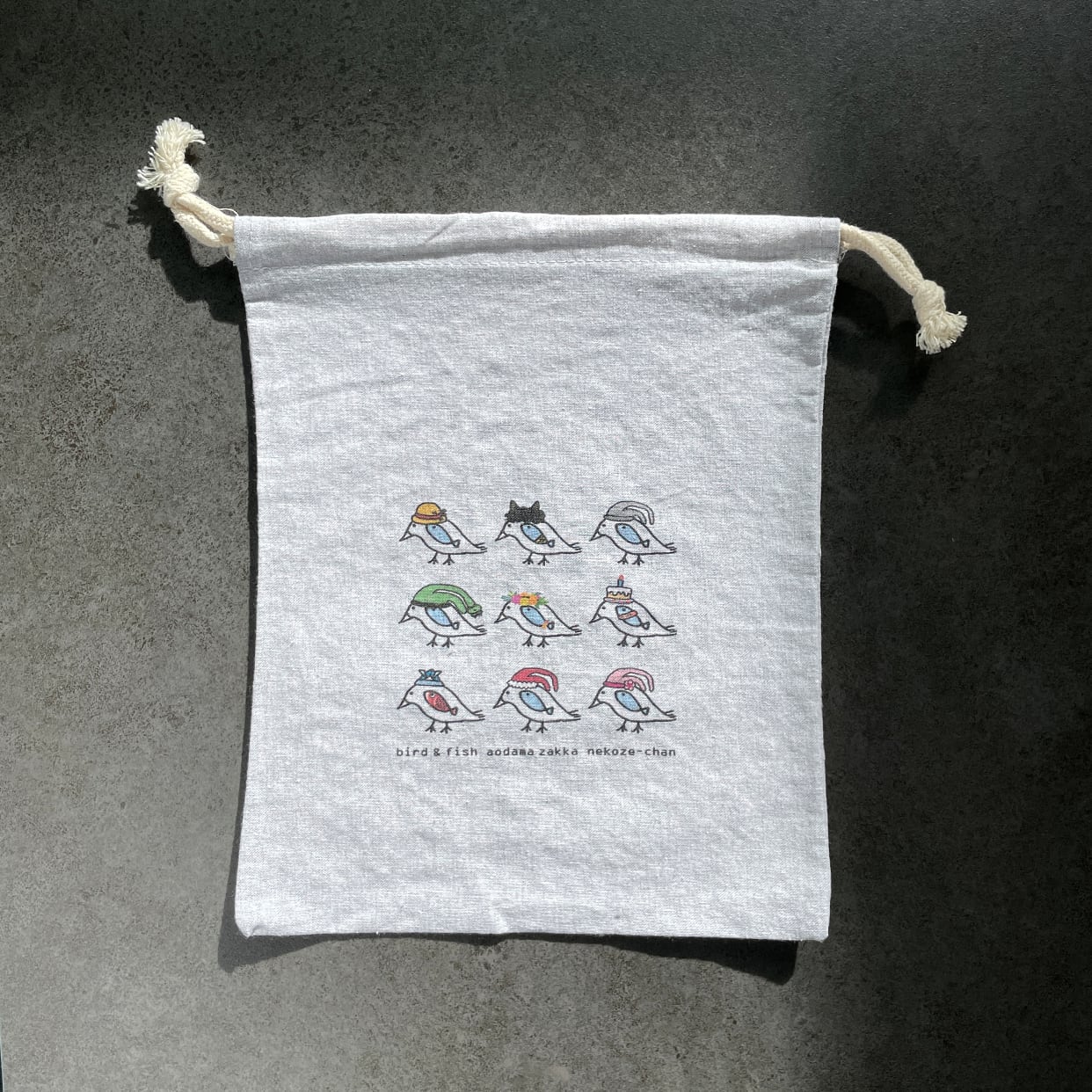 新商品《鳥・魚/花冠ねこぜちゃん・選抜9》きんちゃく デザフェス62発売商品 巾着 あおだま雑貨店限定商品【クーポン使用で264円OFF】