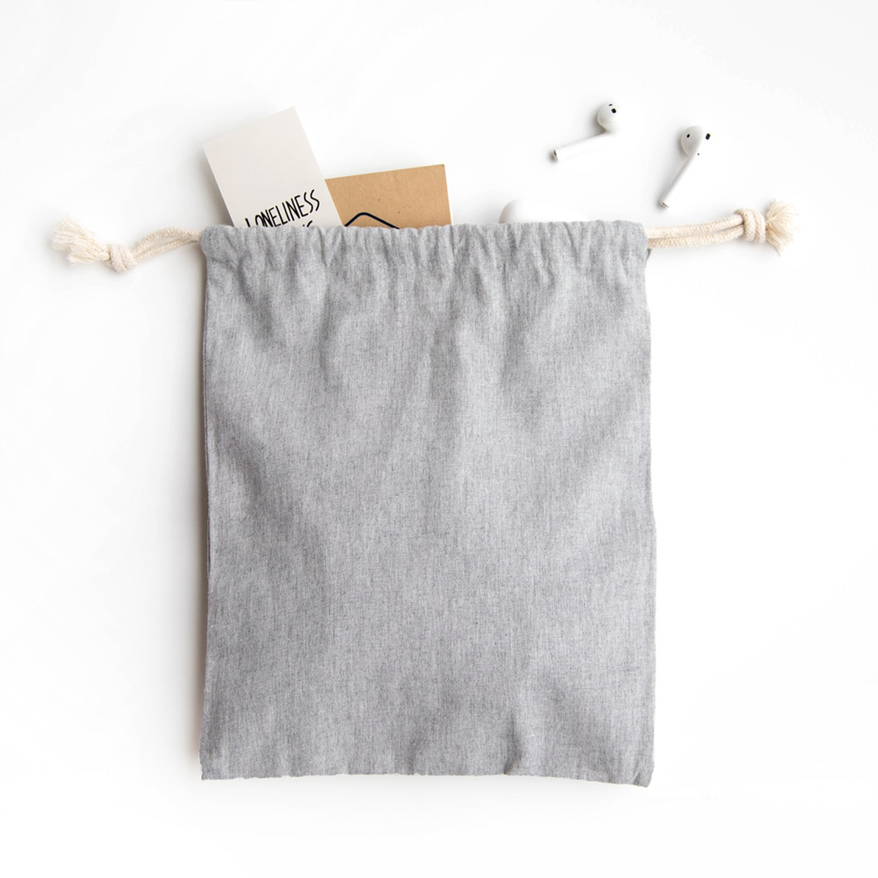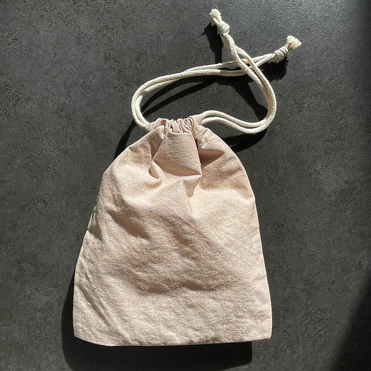 紐をきゅっと結んでお気に入りのものや、散らばってしまうあれこれを入れてみてください。