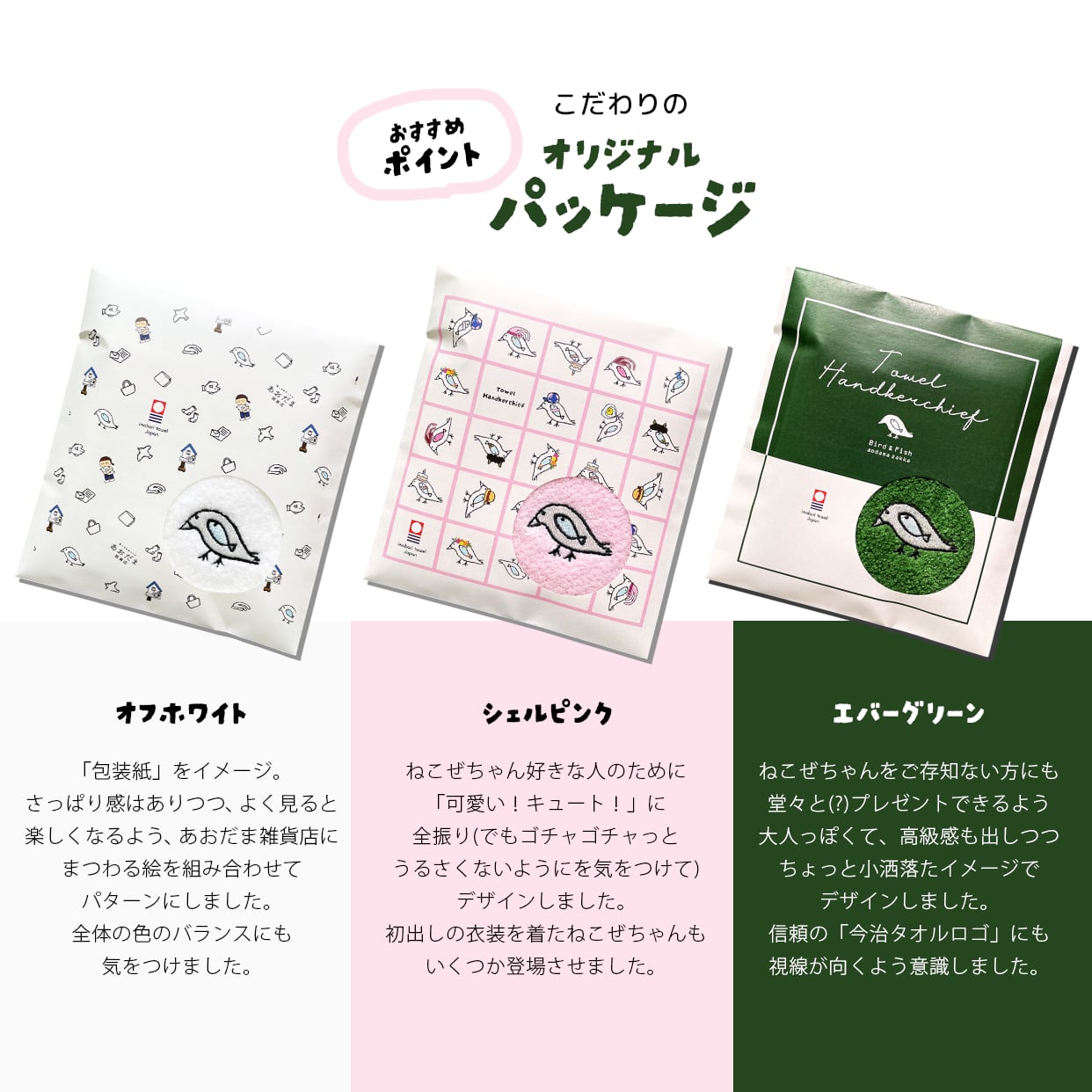 ハンカチ自体の品質や、ねこぜちゃんの刺繍はそれだけで可愛いのですが、パッケージを付けてもっと選ぶのが楽しい商品に、手に取った時により嬉しい商品に、そしてプレゼントとしてもそのまま渡していただけるような商品を目指しました。