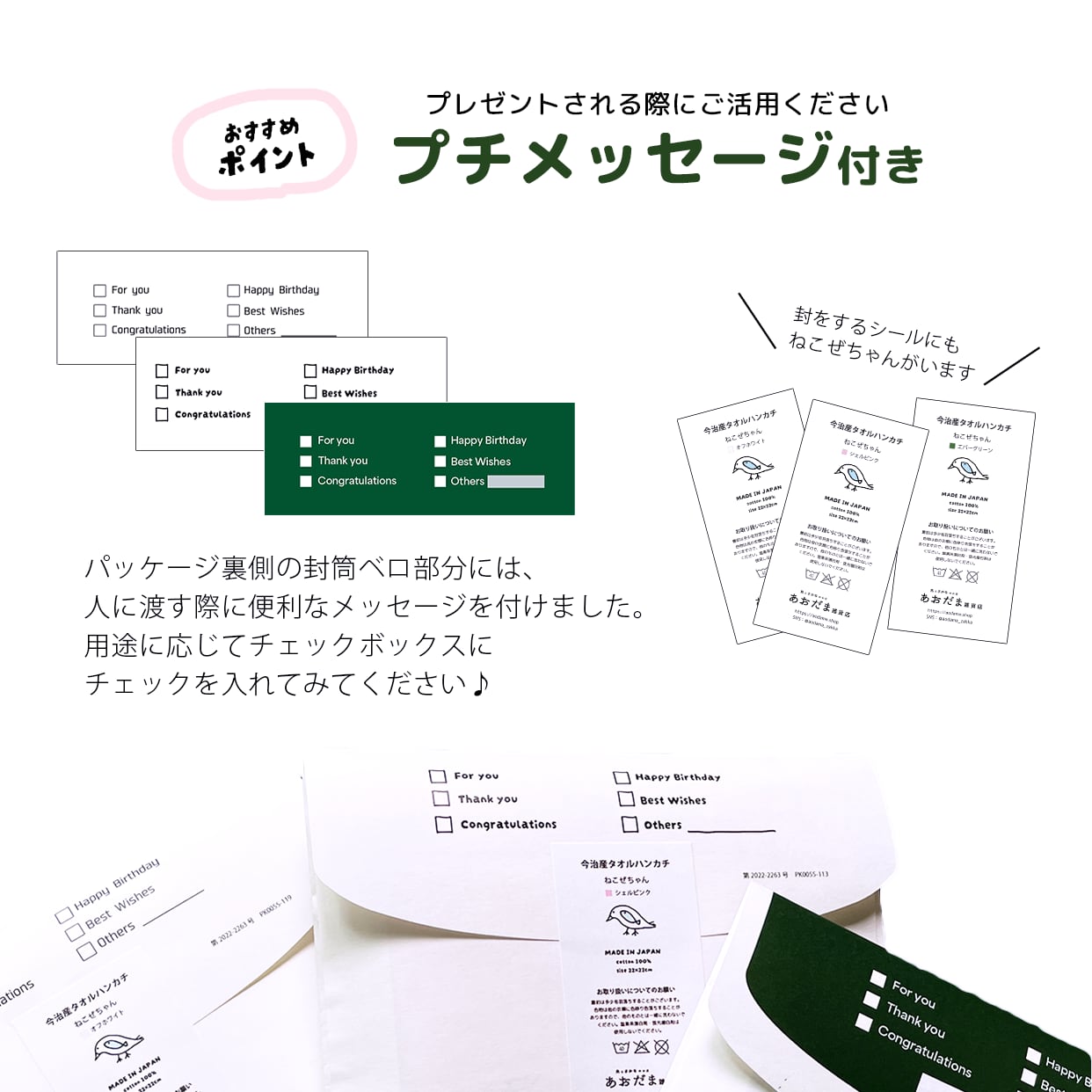 ねこぜちゃんのタオルハンカチはすべて今治タオルの認定を受けています。