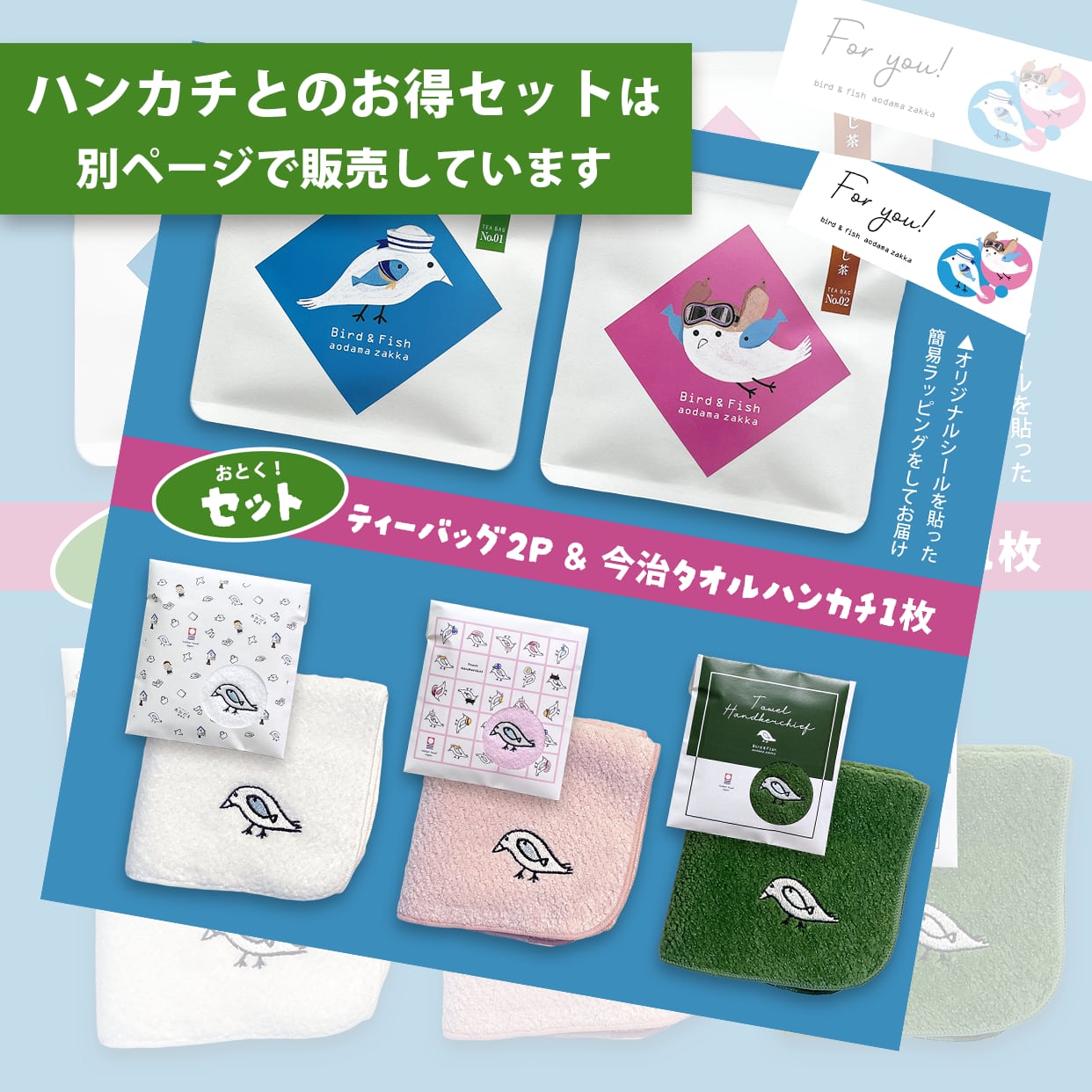 ※こちらの商品の簡易ラッピングはパッケージされたハンカチを透明な袋に入れ、シールとリボンを貼った状態となります。通常の簡易ラッピングで使用している「白い袋」には入っていませんので、予めご了承ください。