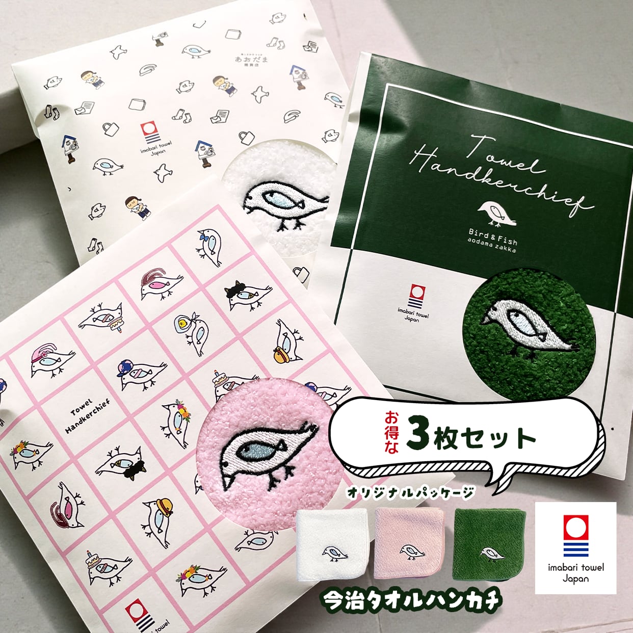 新商品《鳥・魚/ねこぜちゃん》★お得な3枚セット★今治タオルハンカチ 刺繍ハンカチ デザフェス62発売商品 ふわふわ 日本製 あおだま雑貨店限定商品【クーポン利用で598円OFF】