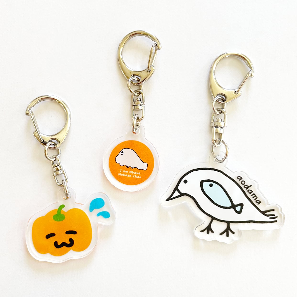 新商品《鳥・魚/おばけねこぜちゃん》 アクリルキーホルダー ナスカン デザフェス62発売商品 クリア あおだま雑貨限定商品【クーポン利用で82円OFF】