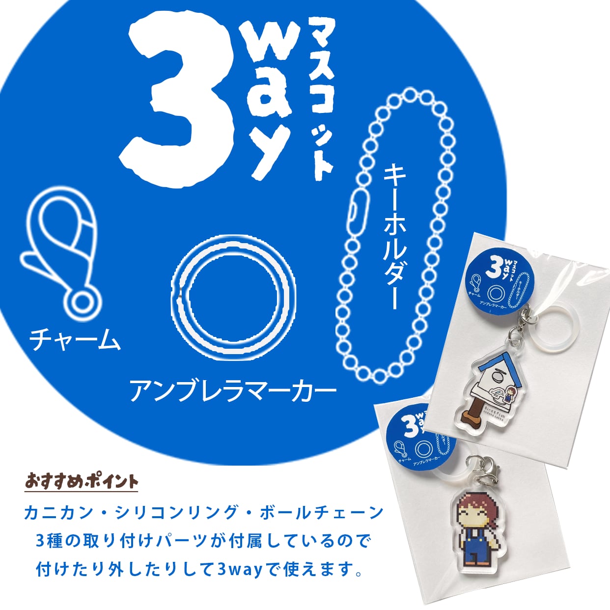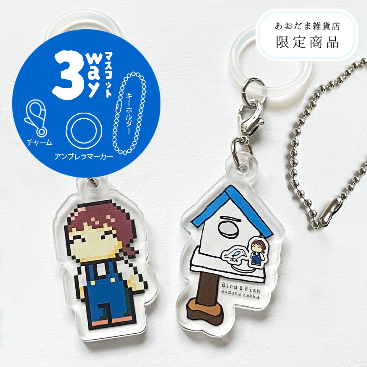 新商品《店長・巣箱》3wayチャーム キーホルダー アンブレラマーカー めじるしアクセサリー 傘の目印 チャーム レイングッズ あおだま雑貨限定商品【クーポン利用で90円OFF】