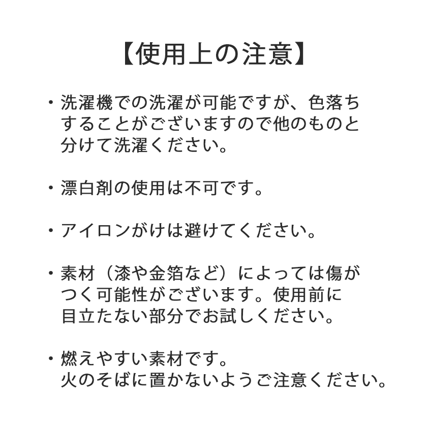 ・素材(漆や金箔など)によっては傷がつく可能性がございます。使用前に目立たない部分でお試しください。