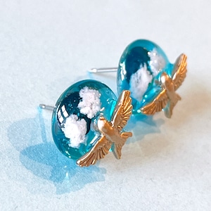 こちらは晴れ渡った空を自由に羽ばたくつばめの姿を切り取ったピアス。