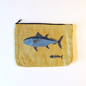 新商品《魚/まぐろ》スクエアポーチ マグロ × ツナ缶 ゴブラン織り 酒の肴シリーズ ほろ酔い 個性的