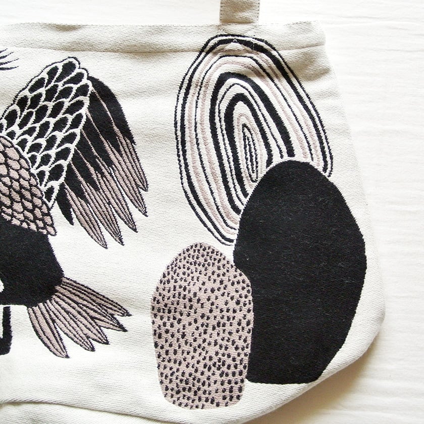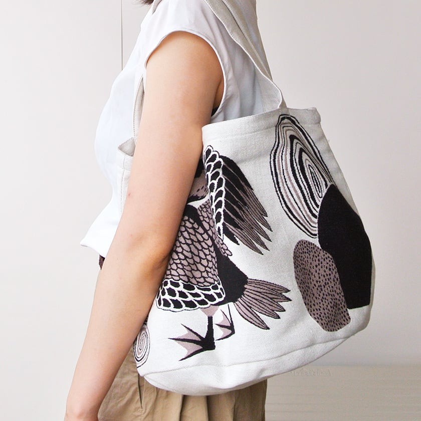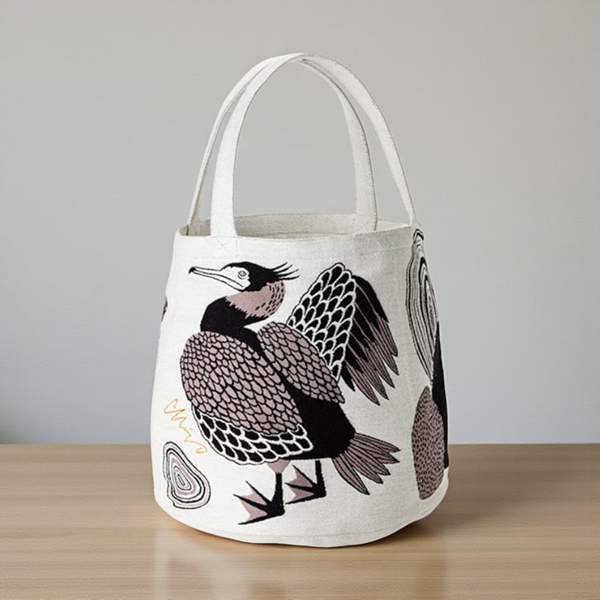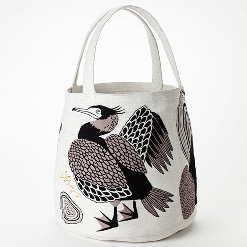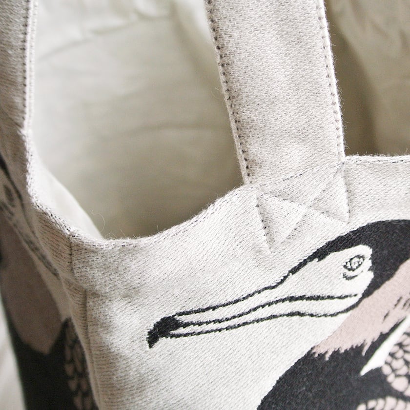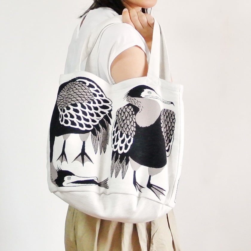 こちらは「ウ(鵜)」のデザインのトートバッグ。