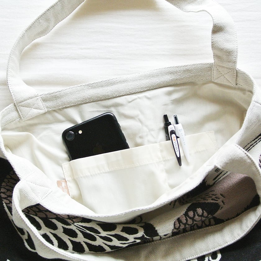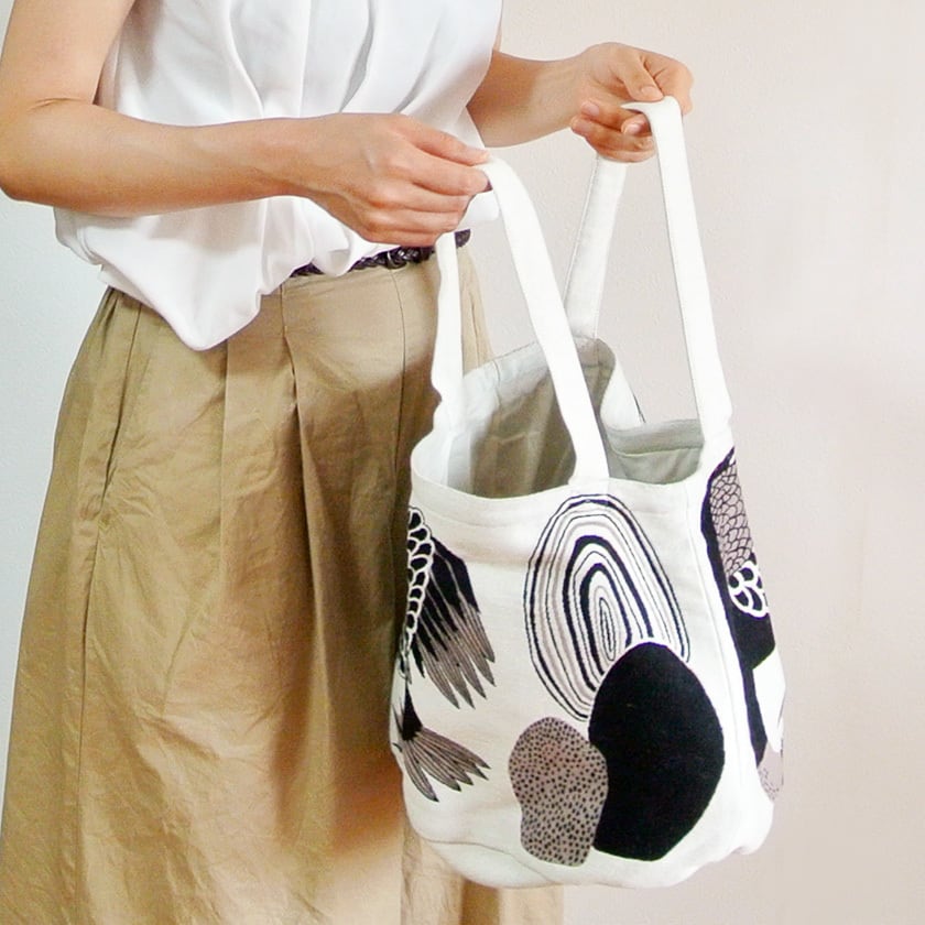 コロリンとした愛おしいカタチのトートバッグは、しっかり織り上げた厚手の生地に上品なカラーの裏地付きです。