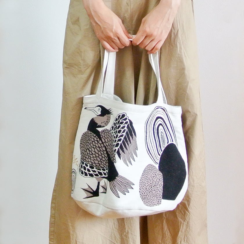 ★【訳あり】アウトレット★15%OFF《鳥/鵜》トートバッグ 川ほとりのニンマリのウたち moritaMiW 綿100% 川鵜 マザーズバッグ