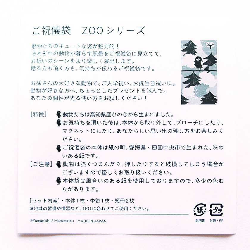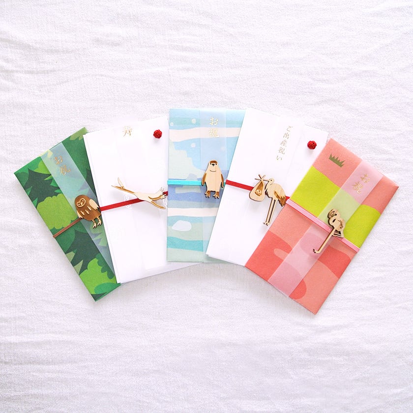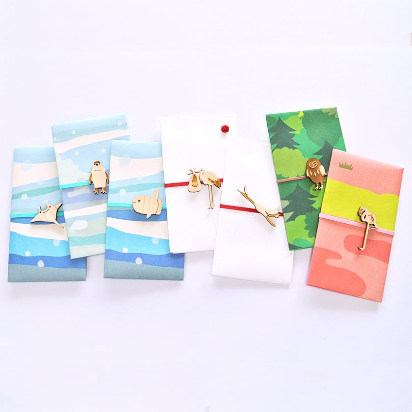 それぞれの動物が暮らす風景をご祝儀袋に見立てて、お祝いのシーンをより楽しく演出します。