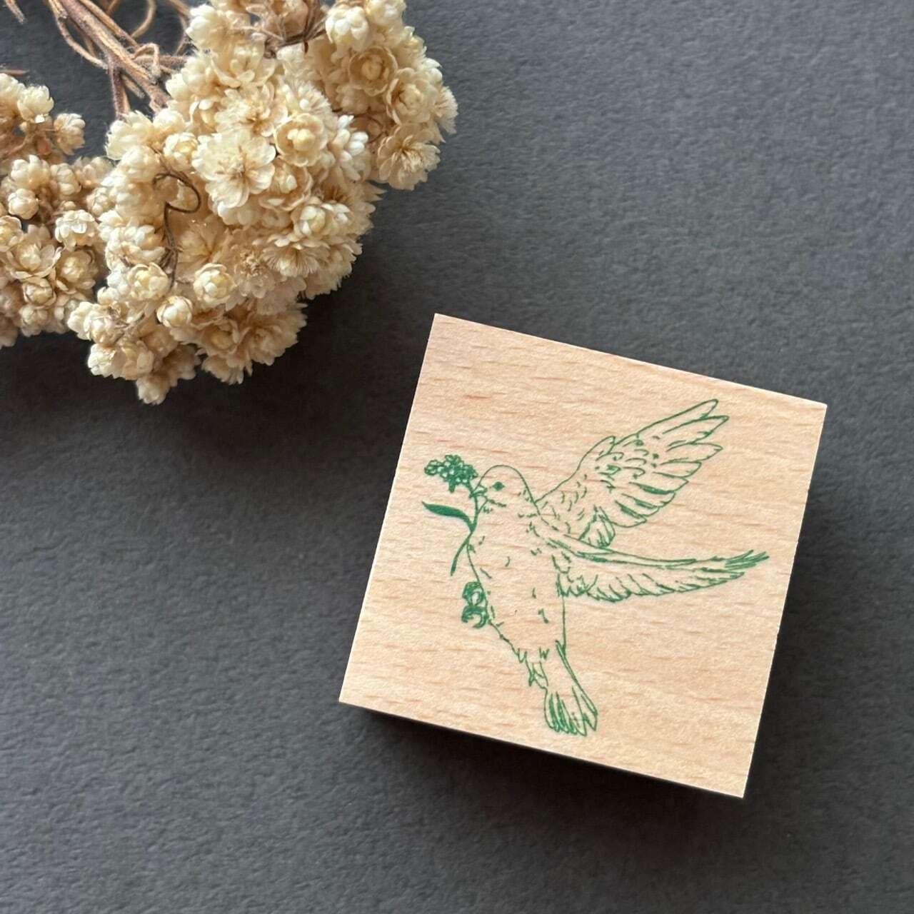 新商品《鳥/ハト》ウッドマウントスタンプ 勿忘草と白鳩 nemunoki paper item