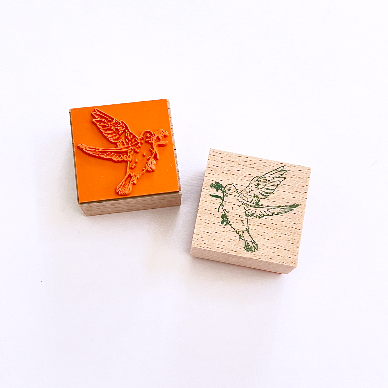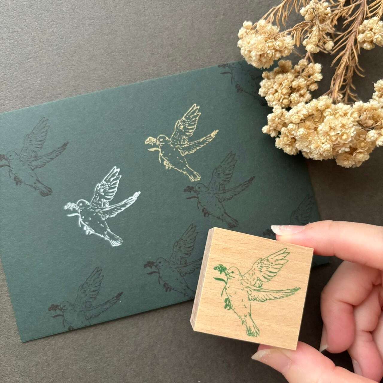 こちらは連ねて捺すのもかわいい白鳩のスタンプ。