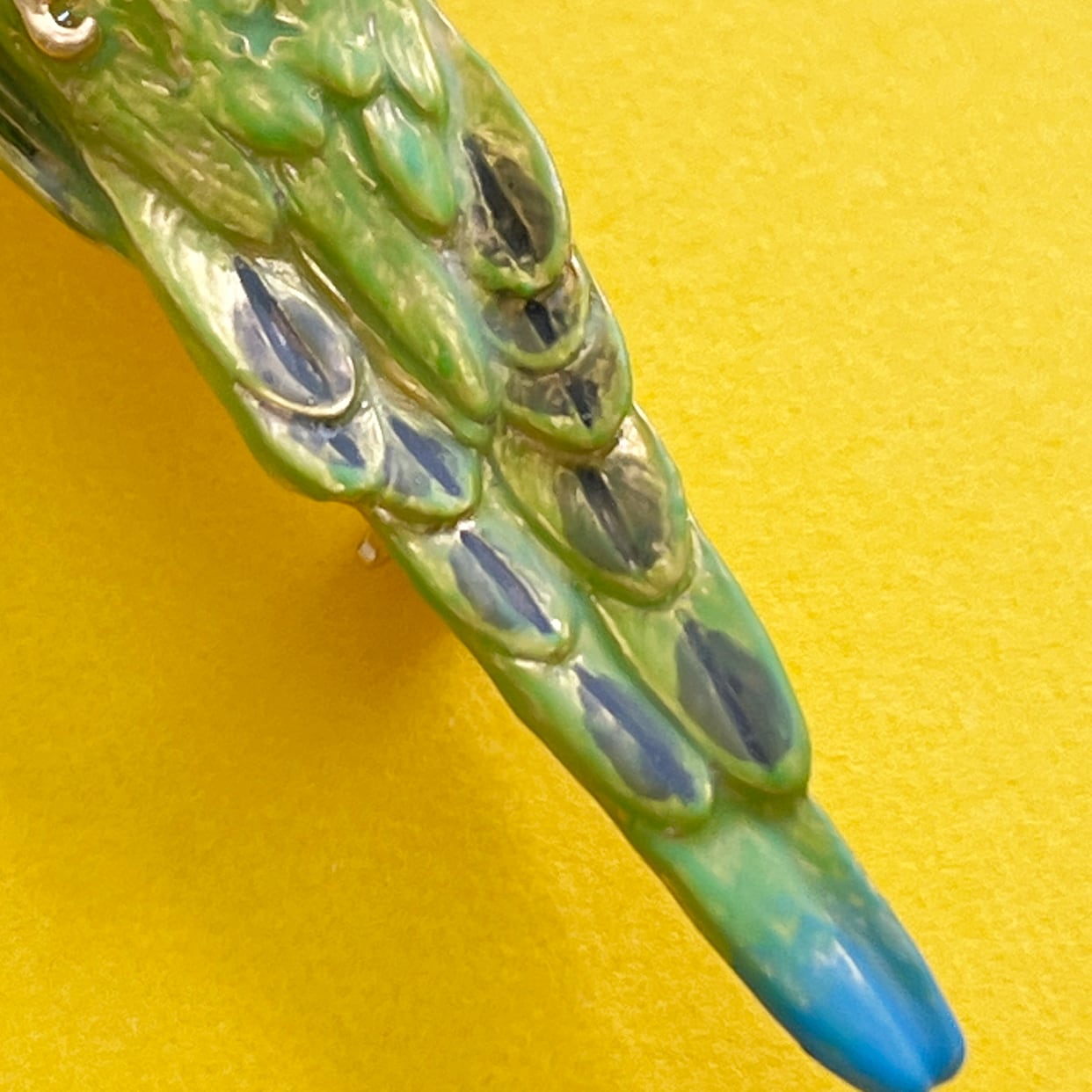 美しい羽色は、鳥特有の羽質感を表現するためマットな加工で仕上げました。