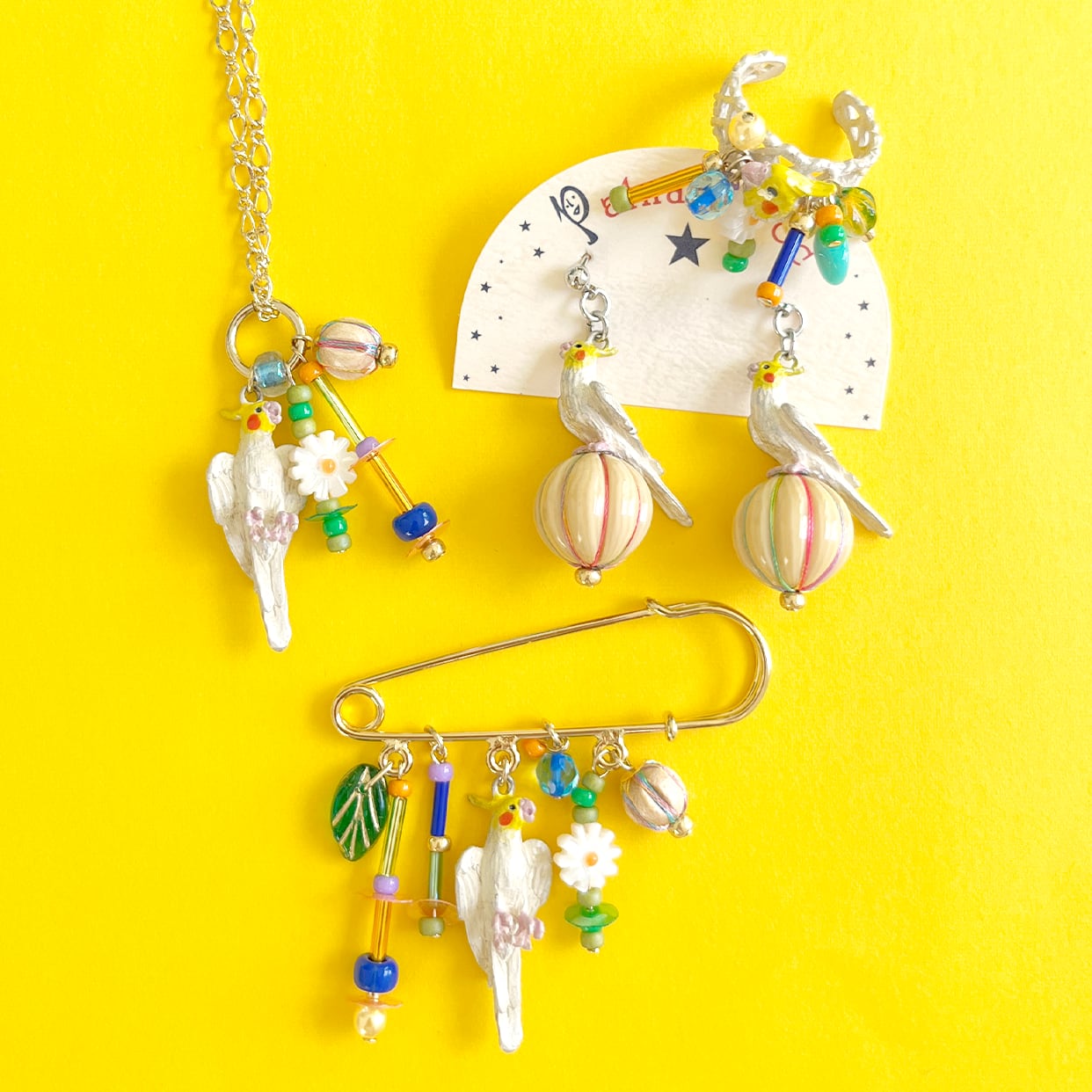 歌をうたいながら求愛しているオカメインコをモチーフにしたピアス。