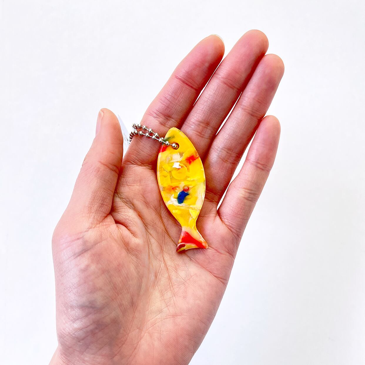 海洋プラスチックごみでできた、お魚型のシンプルなキーホルダー。