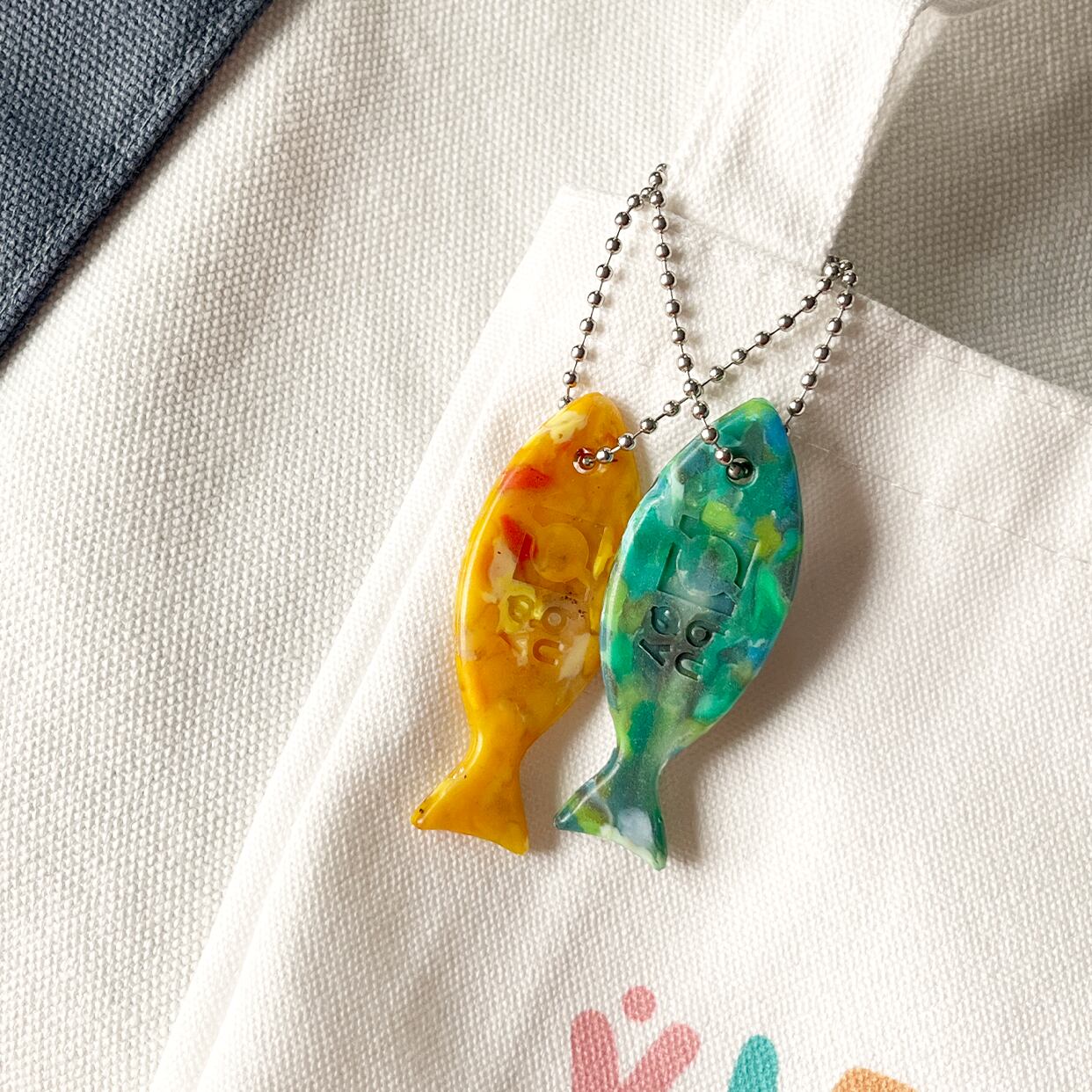 海洋プラスチックごみでできた、お魚型のシンプルなキーホルダー。