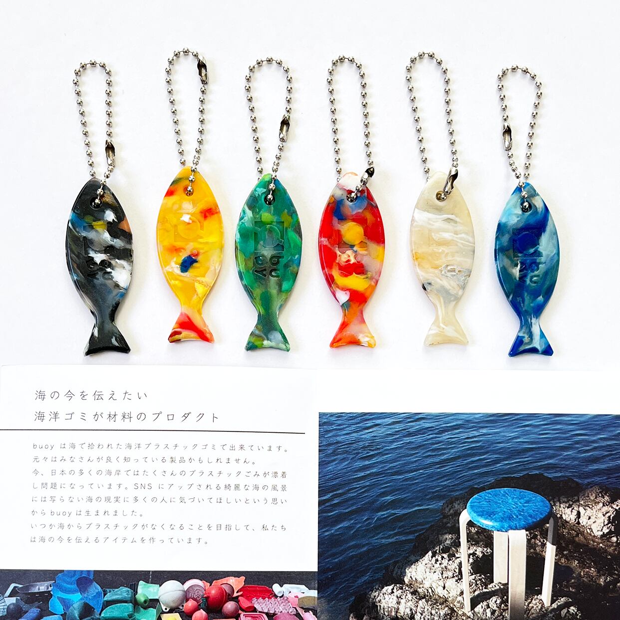 新商品《魚》キーホルダー (グリーン) 海洋プラスチックごみのアップサイクル buoy buøy ブイ