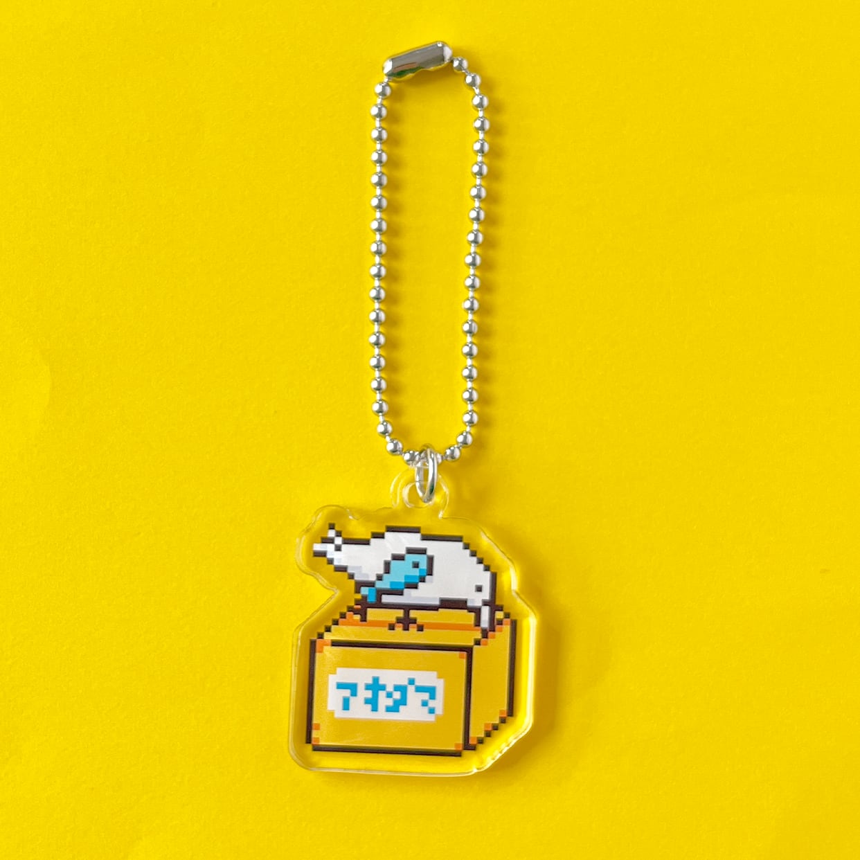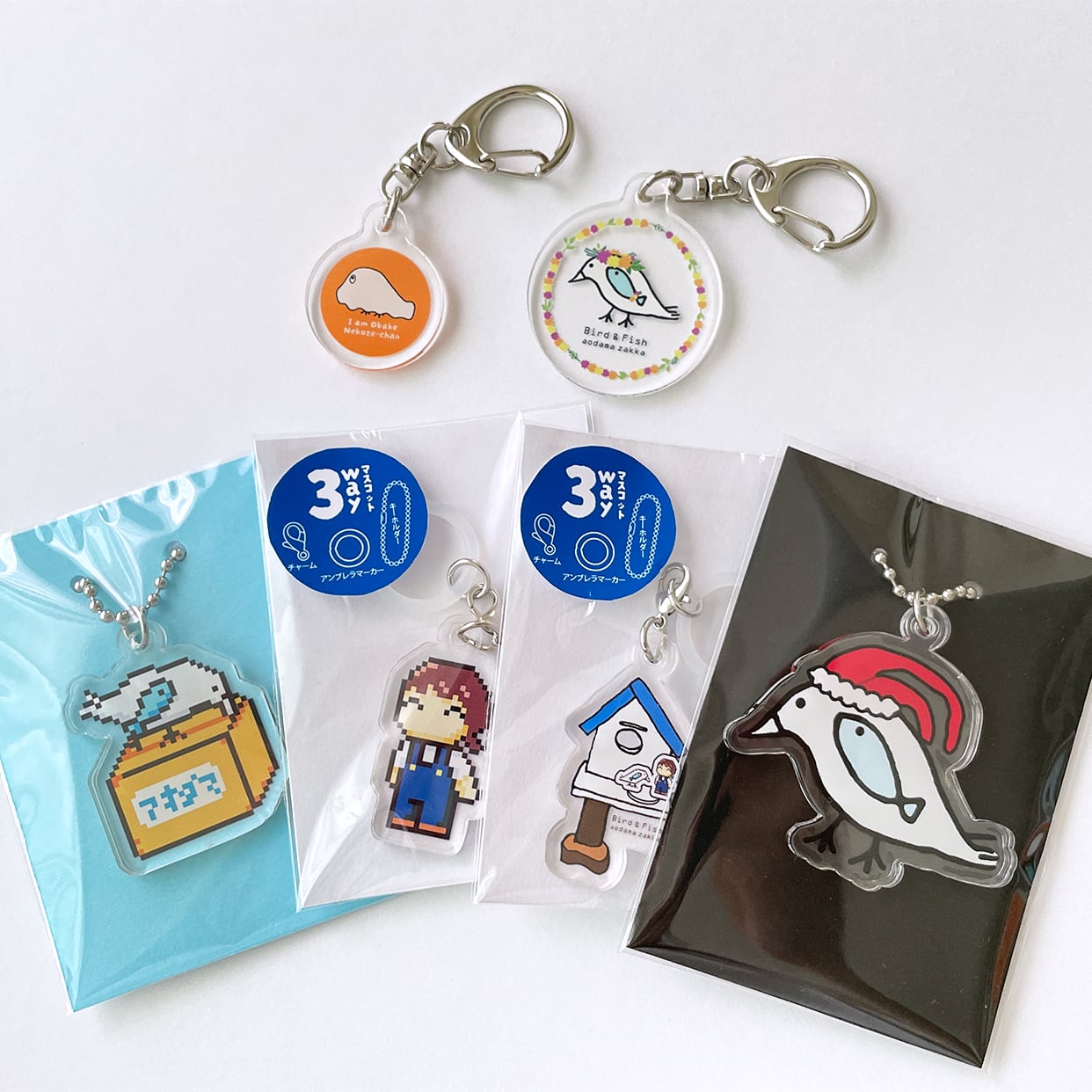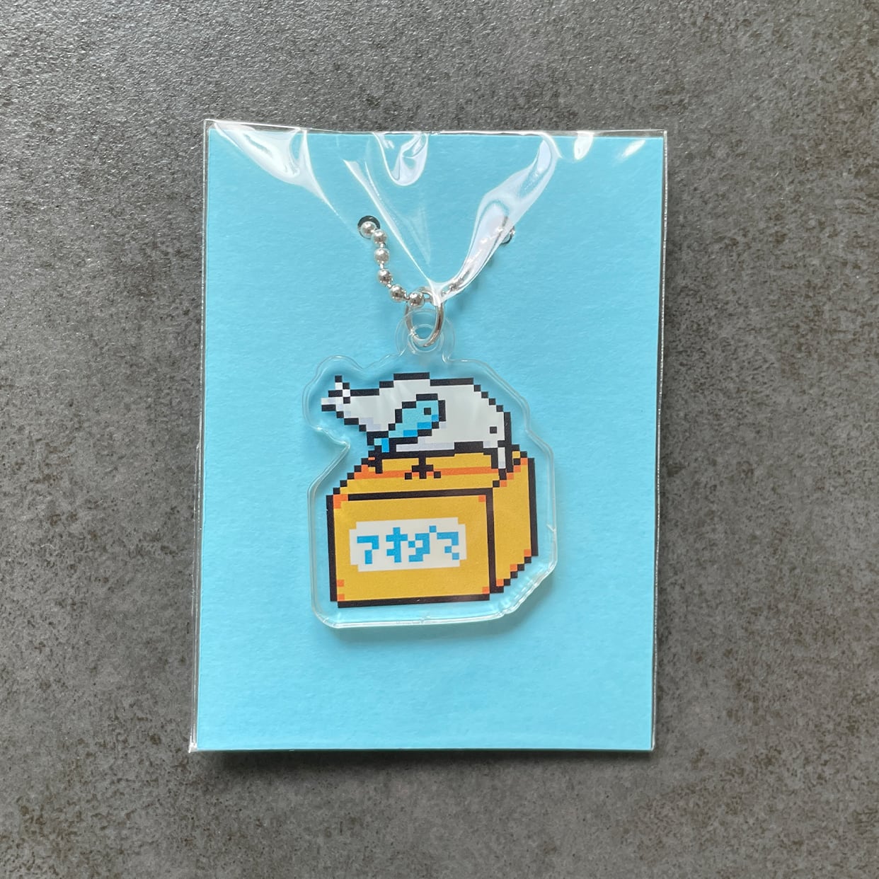 新商品《鳥・魚/段ボールをつつくねこぜちゃん》 アクリルキーホルダー クリア チャーム あおだま雑貨限定商品
