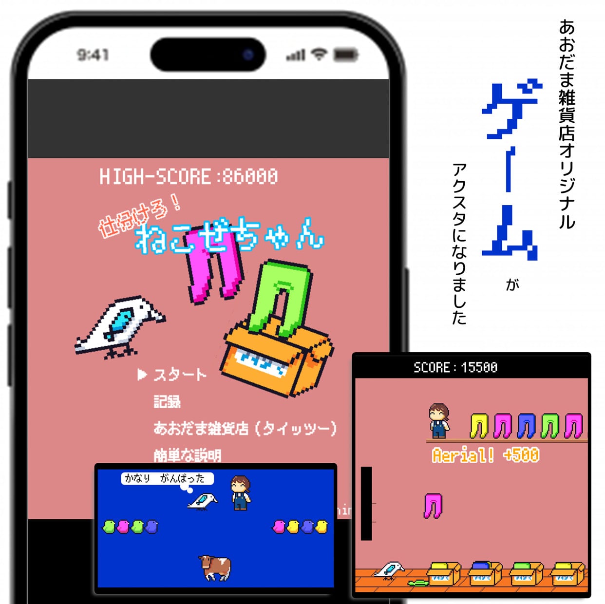 このドット絵は、あおだま雑貨店オリジナルゲーム「仕分けろねこぜちゃん!」に使用された素材を使っています。