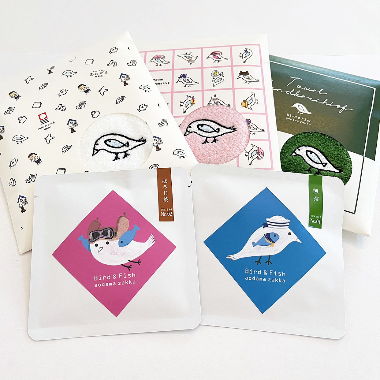 新商品 【母の日ギフトセット】《鳥・魚/ねこぜちゃん》ティーバッグ2P&今治タオルハンカチ1枚セット 煎茶 ほうじ茶 今治タオル お茶 あおだま雑貨限定商品