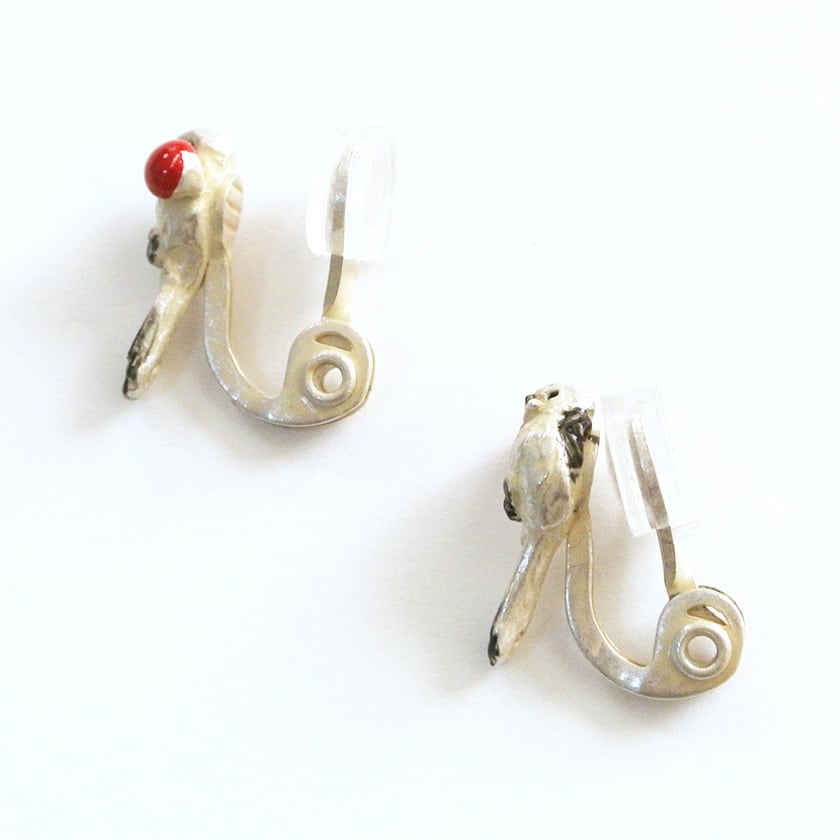 こちらは、南天の実をくわえた可愛らしいシマエナガのイヤリング。