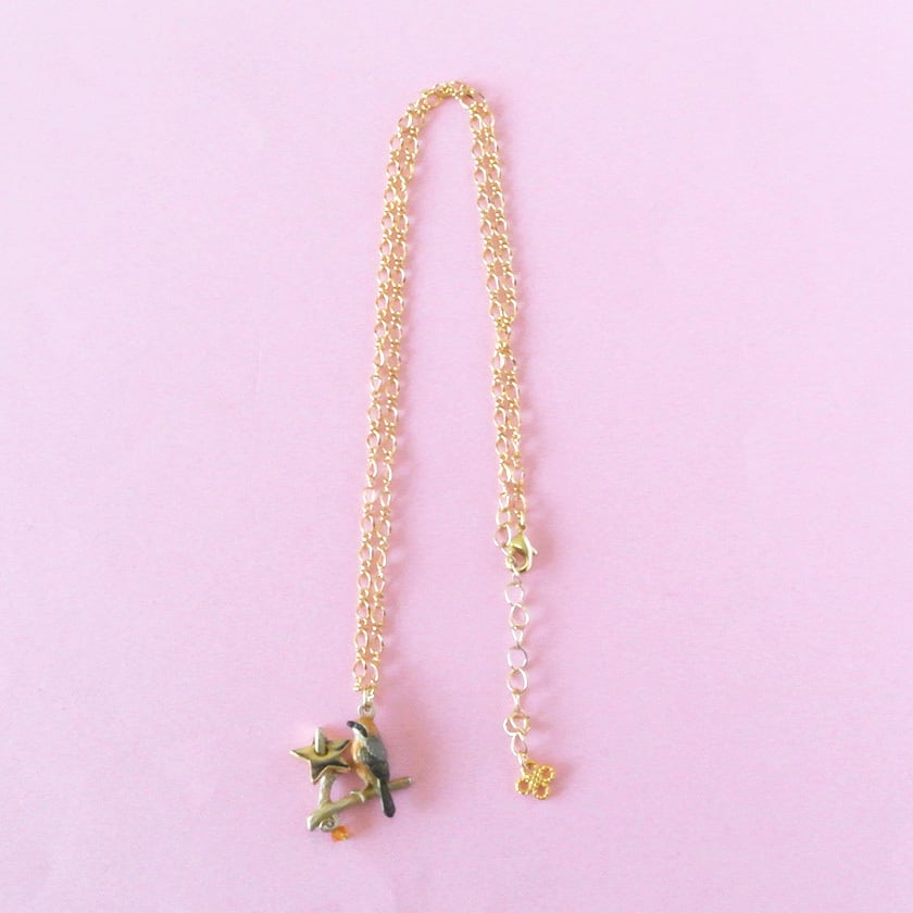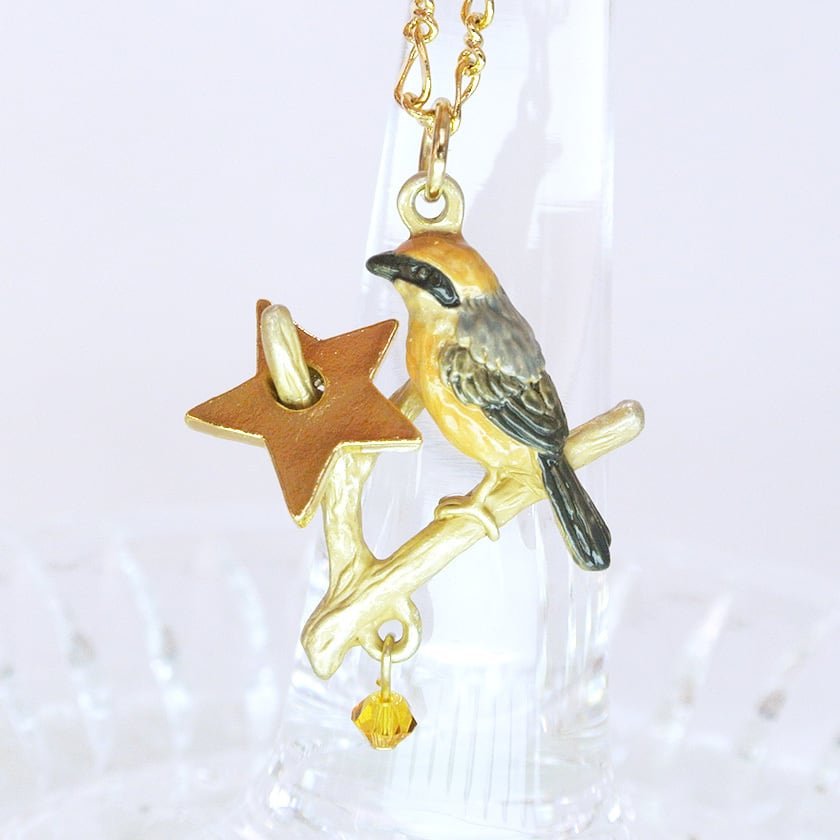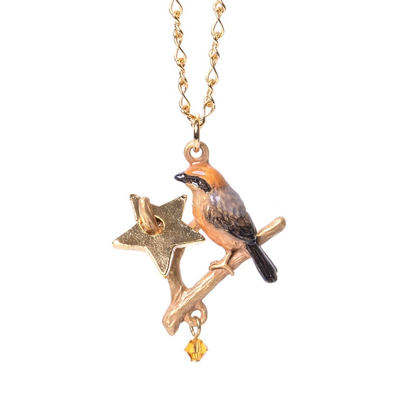 獲物の星を枝に刺し、早贄(はやにえ)にしているモズのネックレス。