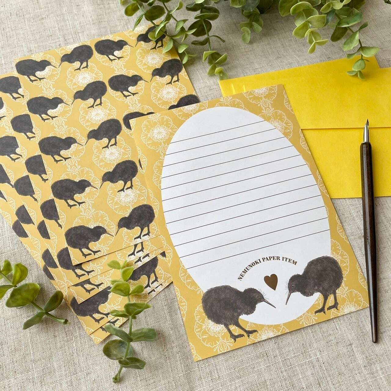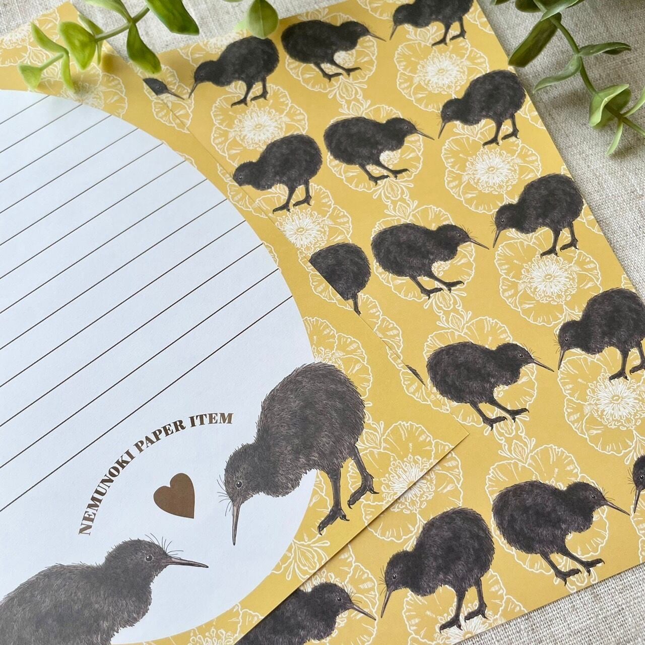 《鳥/キーウィ》レターセット キーウィ&フラワー KIWI & FROWER 黄色 便箋&封筒 A5 nemunoki paper item