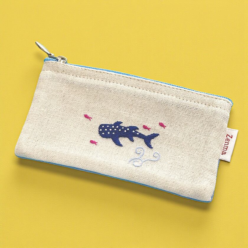 《魚/サメ》ミニポーチ ジンベエザメ ハンドメイド 手刺繍 zenma