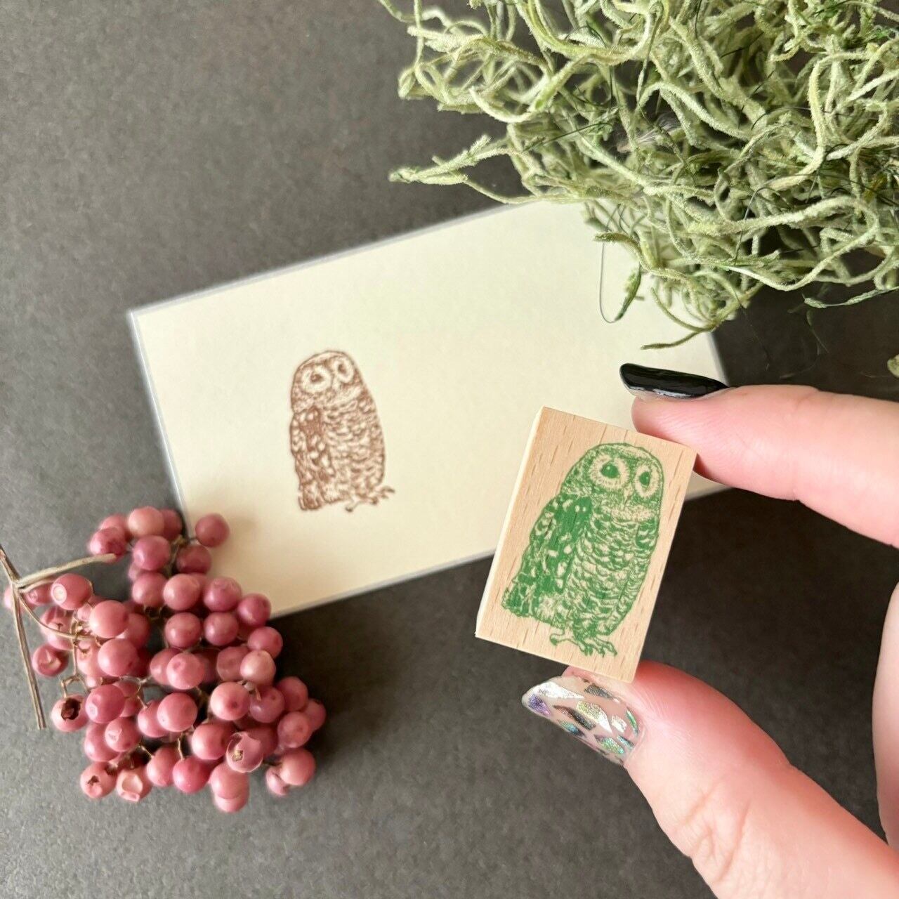 こちらは連ねて捺すのもかわいいモリフクロウのスタンプ。